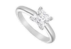 The unification of two into one is symbolized in this diamond solitaire ring. A princess-cut diamond is securely held in a 4-prong setting. Made in 14K white gold this diamond solitaire ring has a total diamond weight (TDW) of 1.75 ct.