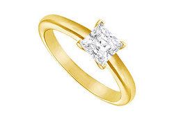 The unification of two into one is symbolized in this diamond solitaire ring. A princess-cut diamond is securely held in a 4-prong setting. Made in 14K yellow gold this diamond solitaire ring has a total diamond weight (TDW) of 1.00 ct.