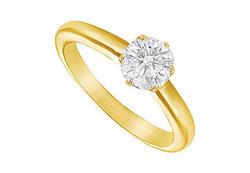 The unification of two into one is symbolized in this diamond solitaire ring. A brilliant-cut round diamond is securely held in a 6-prong setting. Made in 14K yellow gold this diamond solitaire ring has a total diamond weight (TDW) of 1.25 ct.