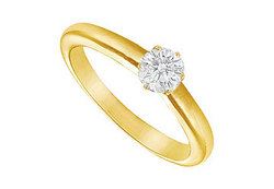 The unification of two into one is symbolized in this diamond solitaire ring. A brilliant-cut round diamond is securely held in a 6-prong setting. Made in 18K yellow gold this diamond solitaire ring has a total diamond weight (TDW) of 0.25 ct.