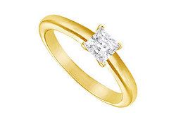 The unification of two into one is symbolized in this diamond solitaire ring. A princess-cut diamond is securely held in a 4-prong setting. Made in 18K Yellow gold this diamond solitaire ring has a total diamond weight (TDW) of 0.33 ct.