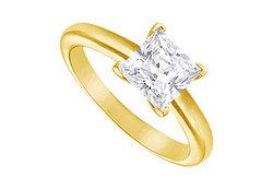 The unification of two into one is symbolized in this diamond solitaire ring. A princess-cut diamond is securely held in a 4-prong setting. Made in 18K yellow gold this diamond solitaire ring has a total diamond weight (TDW) of 2.00 ct.