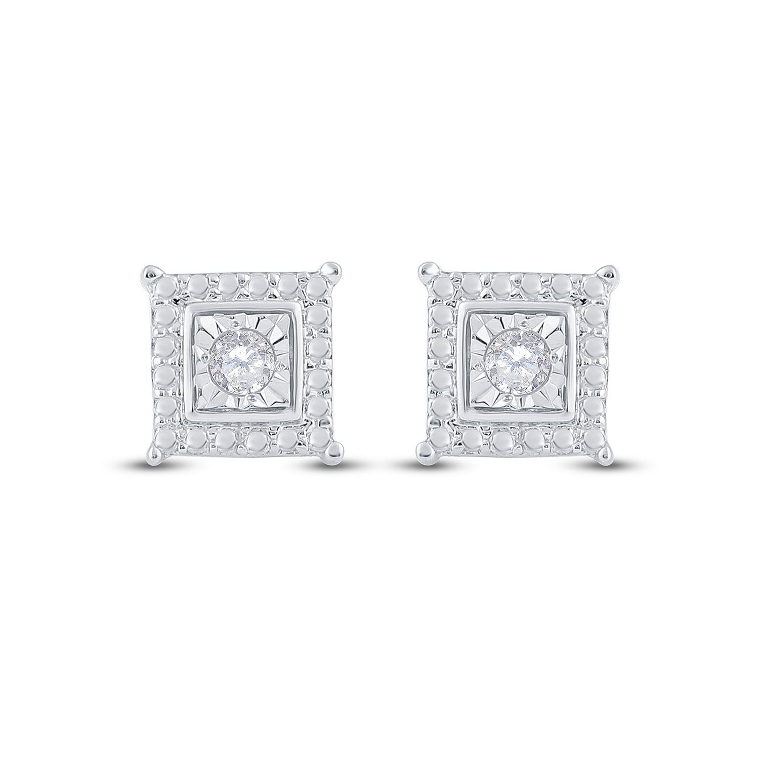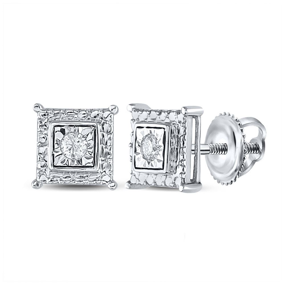 Sterling Silver Womens Round Diamond Solitaire Square Stud Earrings 1/10 Cttw