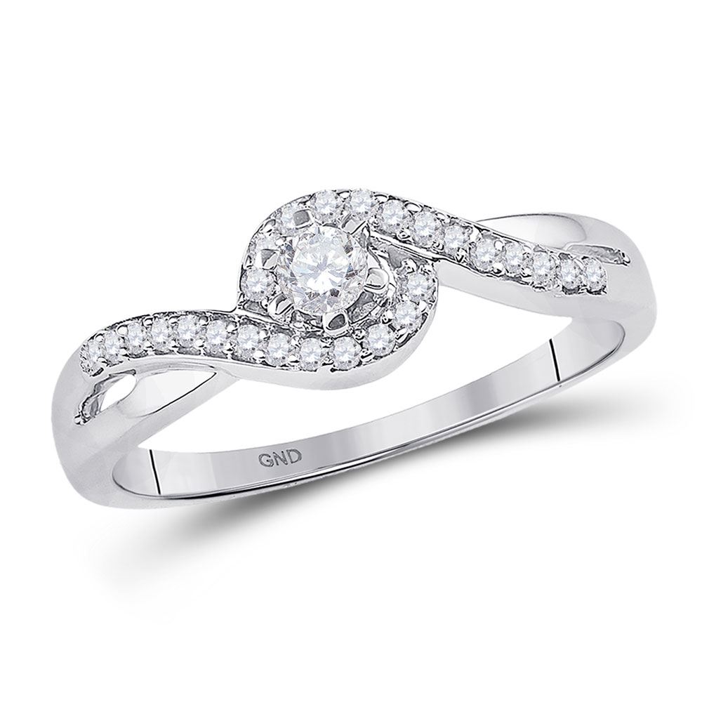REF-25M5X - SKU: GD100737 ---- Diamond Solitaire Swirl Promise Bridal Ring 1/5 Cttw 10kt White Gold