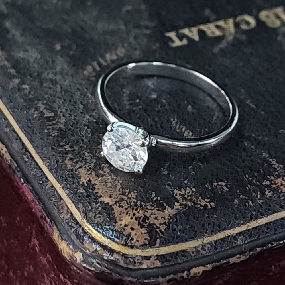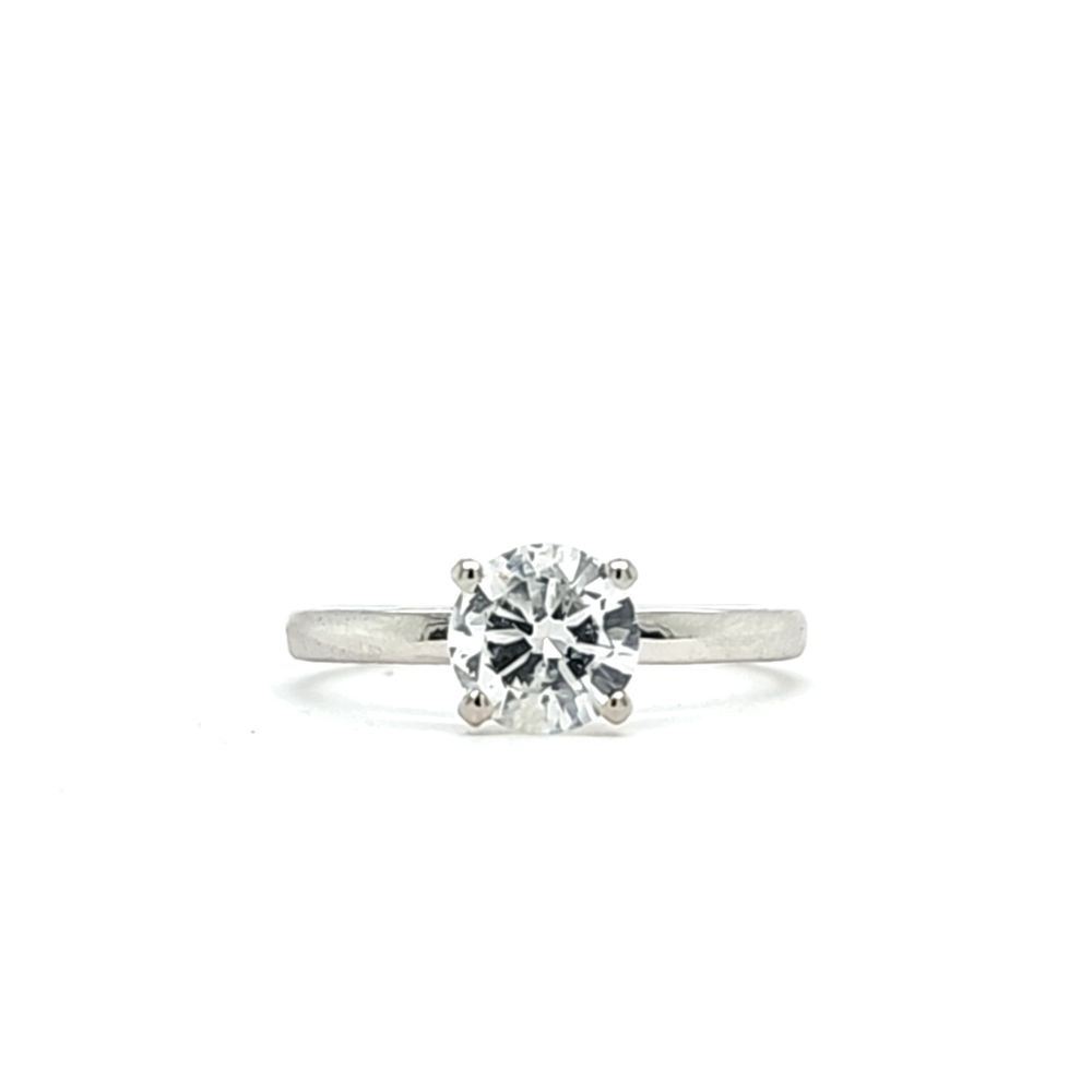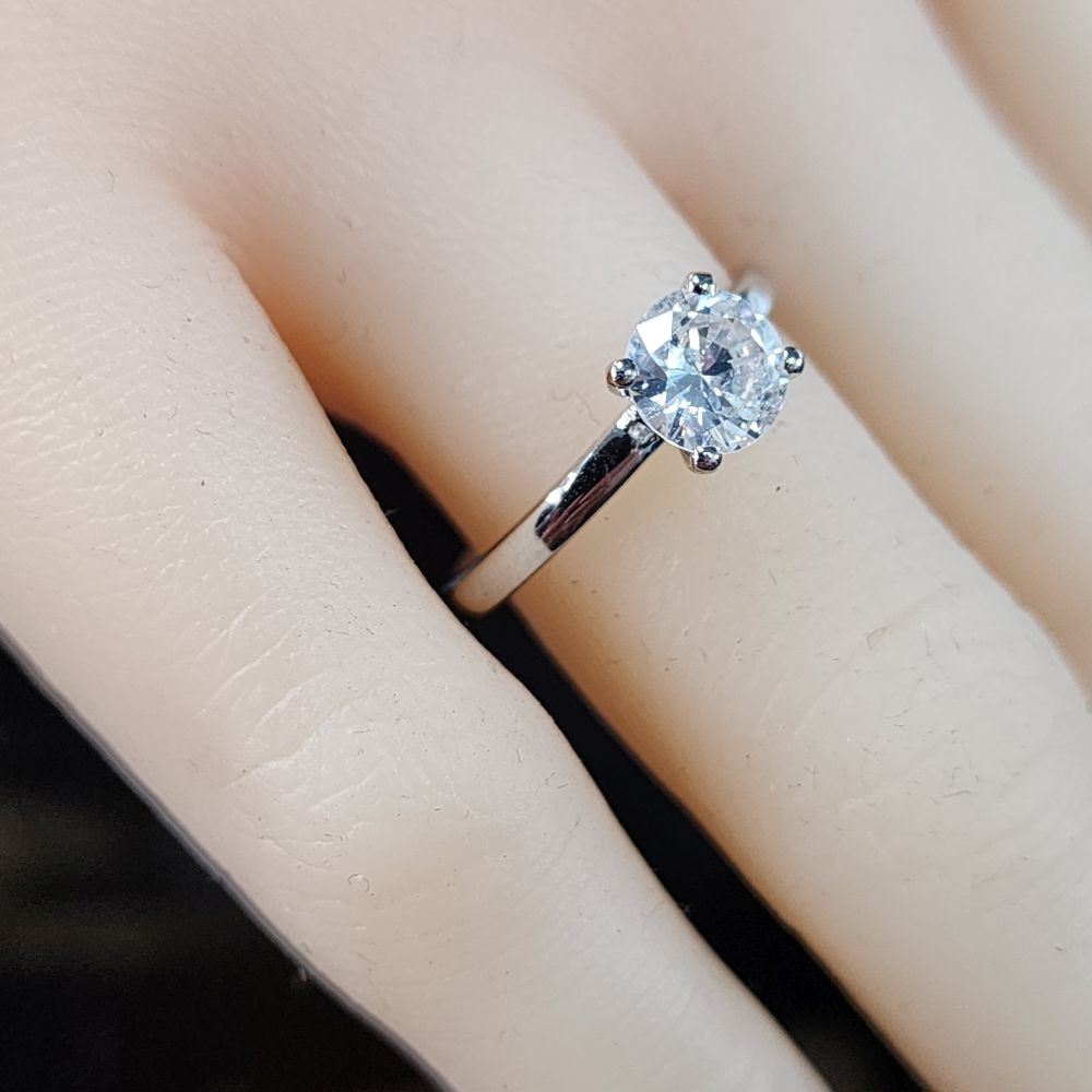 Earth-Mined Diamond Ring.& nbsp; This is a 14 karat white gold diamond ring that features a .86 carat round, brilliant-cut, H color, I1-I2 clarity diamond. The diamond is set with four (4) prongs on an approximate 2 mm shank.& nbsp; The ring is US size 7.& nbsp; This ring can be resized for an additional $100, please allow an additional 10 days for shipping if we resize it.& nbsp; This ring is certified and appraised for $17,328.00 estimated retail replacement value.& nbsp; This is a newly manufactured ring.