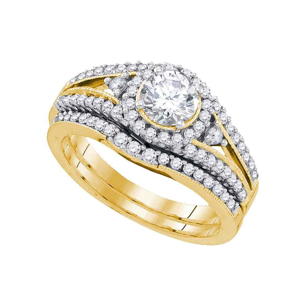 REF-231N8F - SKU: GD90085 ---- Diamond Split-shank Bridal Wedding Engagement Ring Band Set 1-1/4 Cttw 14kt Yellow Gold
