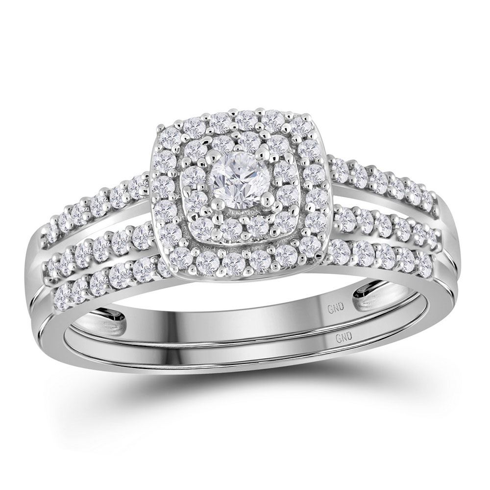 Diamond Split-shank Bridal Wedding Ring Band Set 1/2 Cttw 10KT White Gold