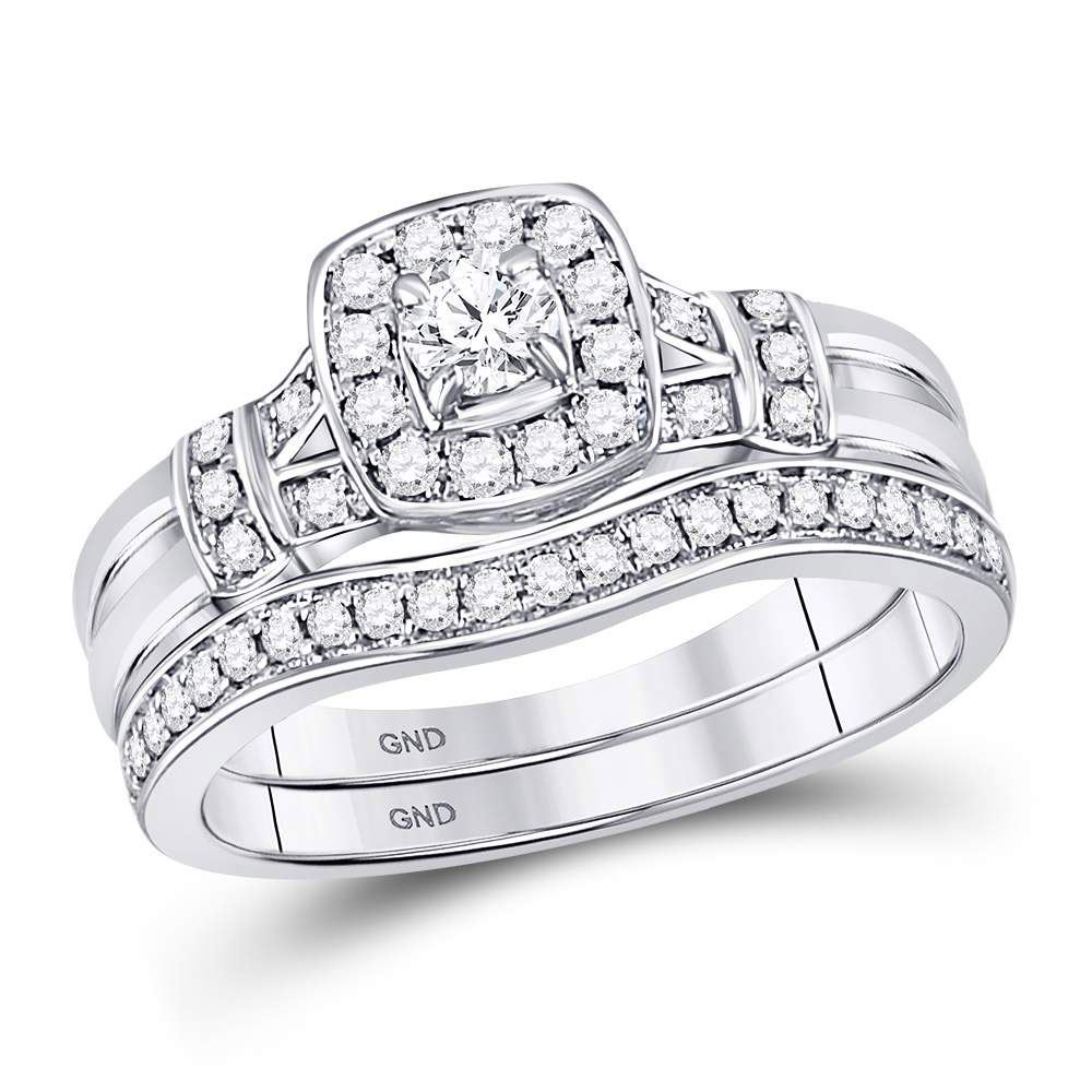 REF-71R8K - SKU: GD119966 ---- Diamond Square Bridal Wedding Engagement Ring Band Set 1/2 Cttw 14kt White Gold