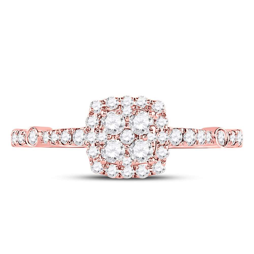 Diamond Square Cluster Bridal Wedding Engagement Ring 1/2 Cttw 14KT Rose Gold