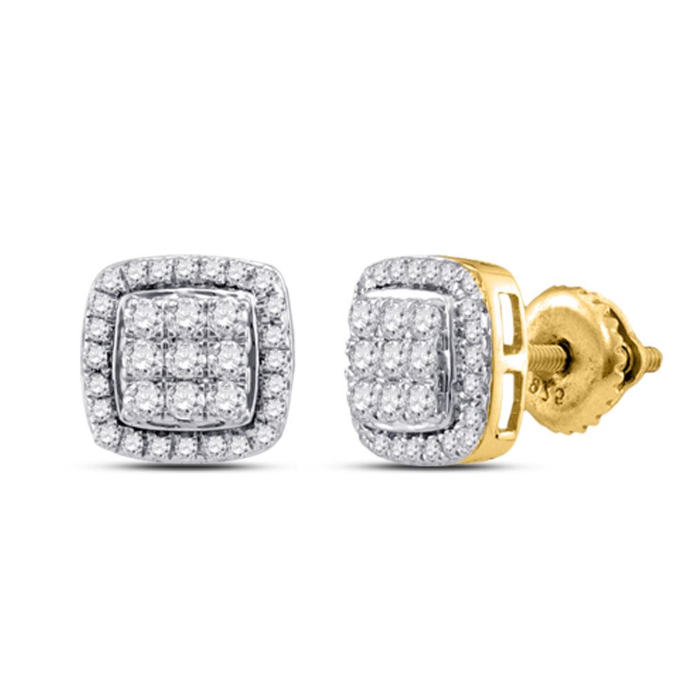 REF-33W6H - SKU: GD113296 ---- Diamond Square Cluster Earrings 1/2 Cttw 10kt Yellow Gold