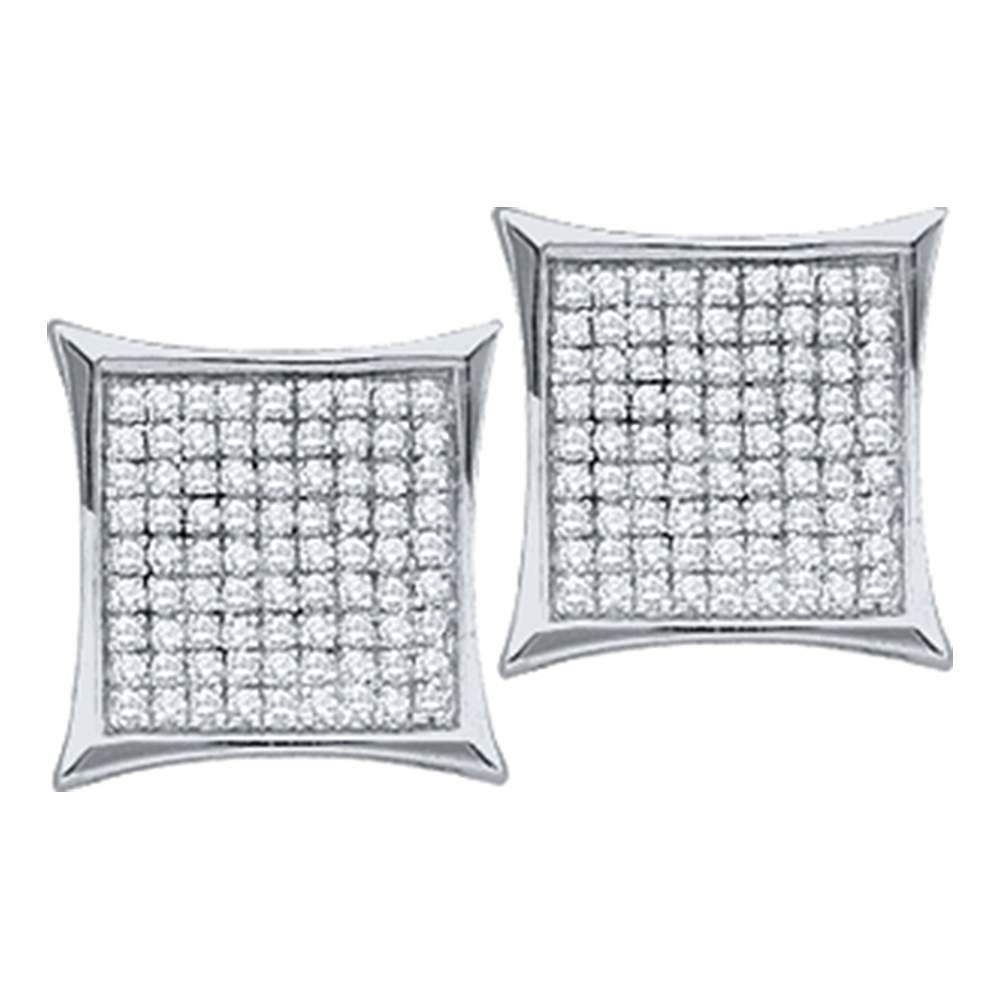 REF-9M1X - SKU: GD54291 ---- Diamond Square Cluster Earrings 1/6 Cttw 10kt White Gold