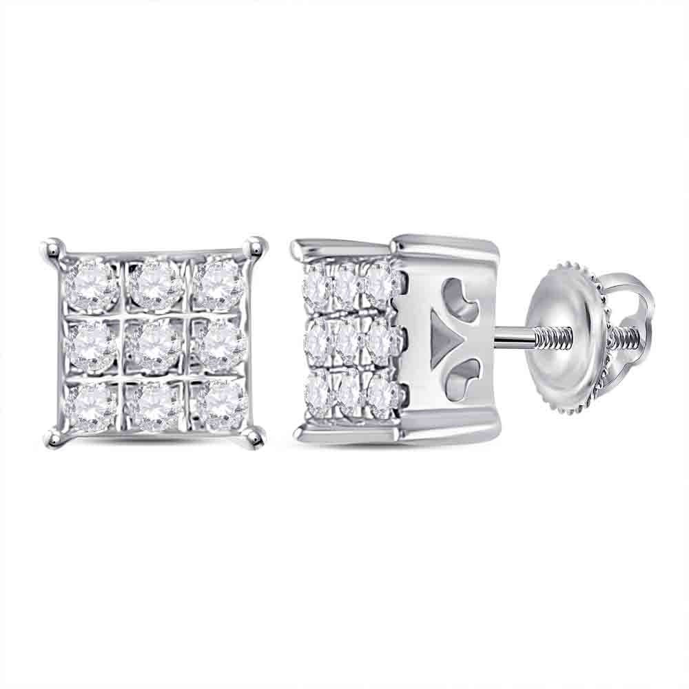 10kt White Gold Womens Round Diamond Square Cluster Earrings 1/6 Cttw