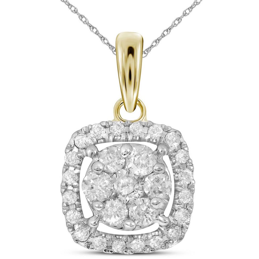 REF-24M5X - SKU: GD110561 ---- Diamond Square Cluster Pendant 1/4 Cttw 14kt Yellow Gold
