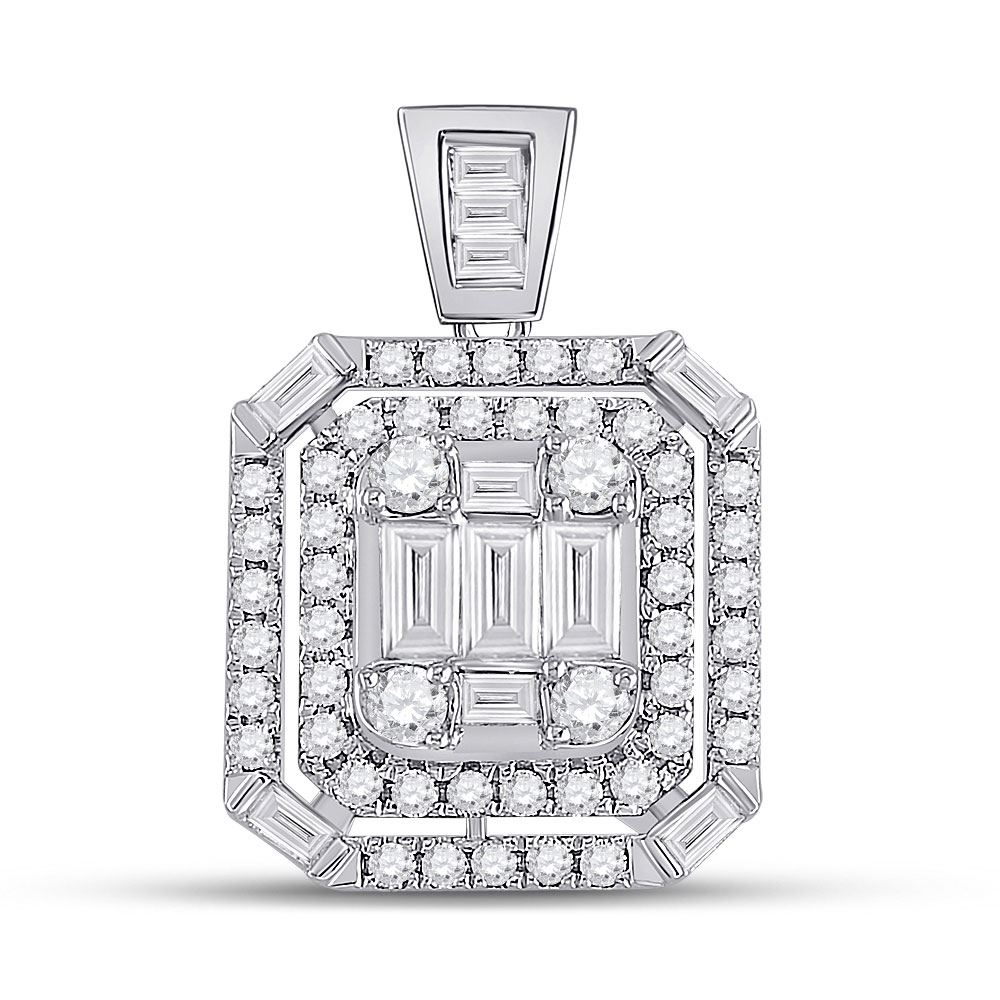 14kt White Gold Womens Round Diamond Square Cluster Pendant 7/8 Cttw