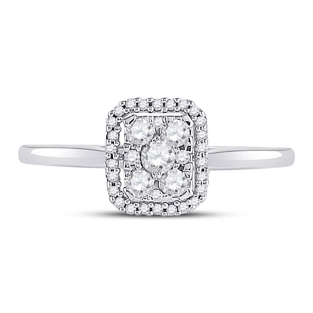 10kt White Gold Womens Round Diamond Square Cluster Ring 1/3 Cttw