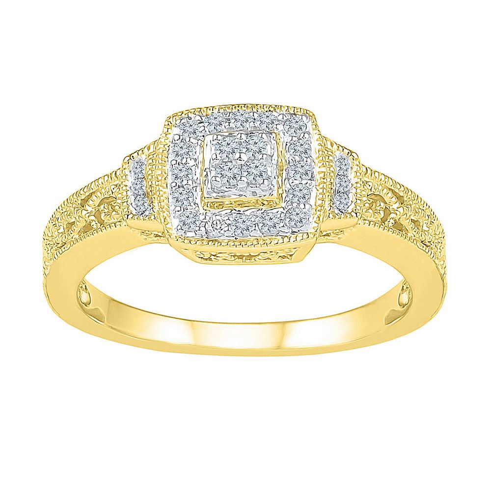 10kt Yellow Gold Womens Round Diamond Square Cluster Ring 1/5 Cttw