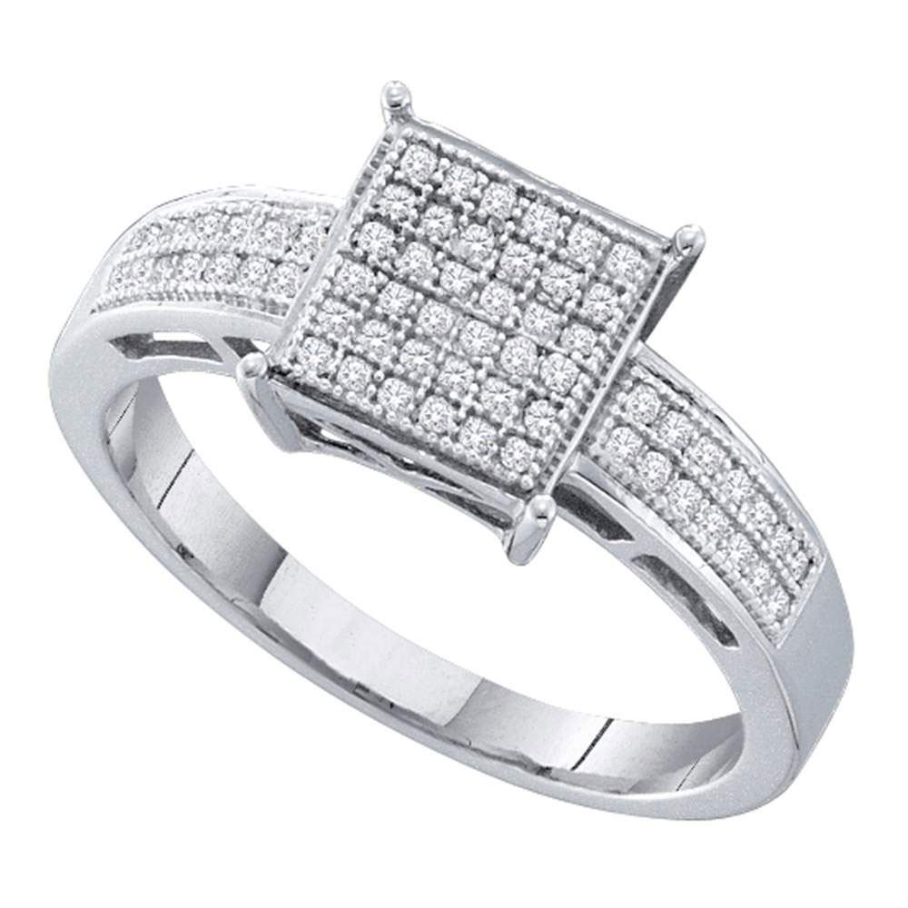 Sterling Silver Womens Round Diamond Square Cluster Ring 1/5 Cttw