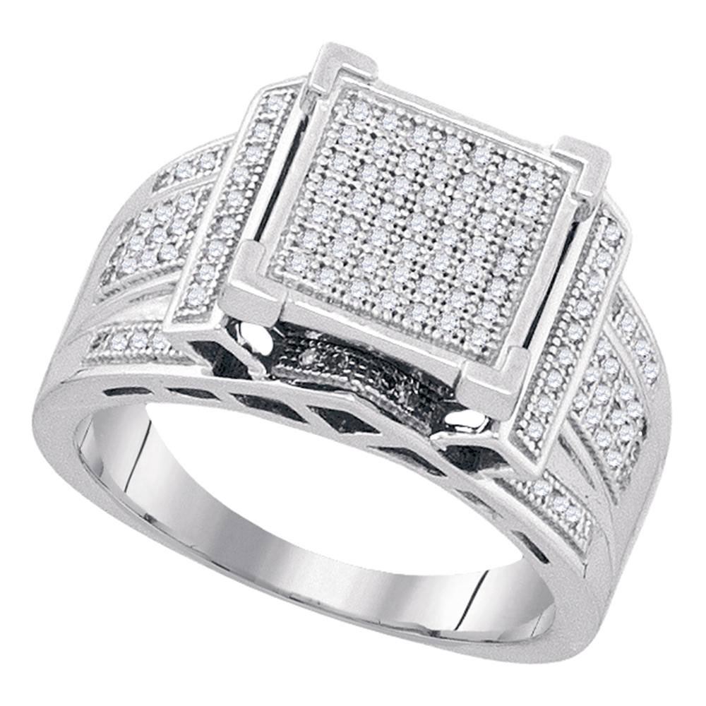 Sterling Silver Womens Round Diamond Square Cluster Ring 3/8 Cttw