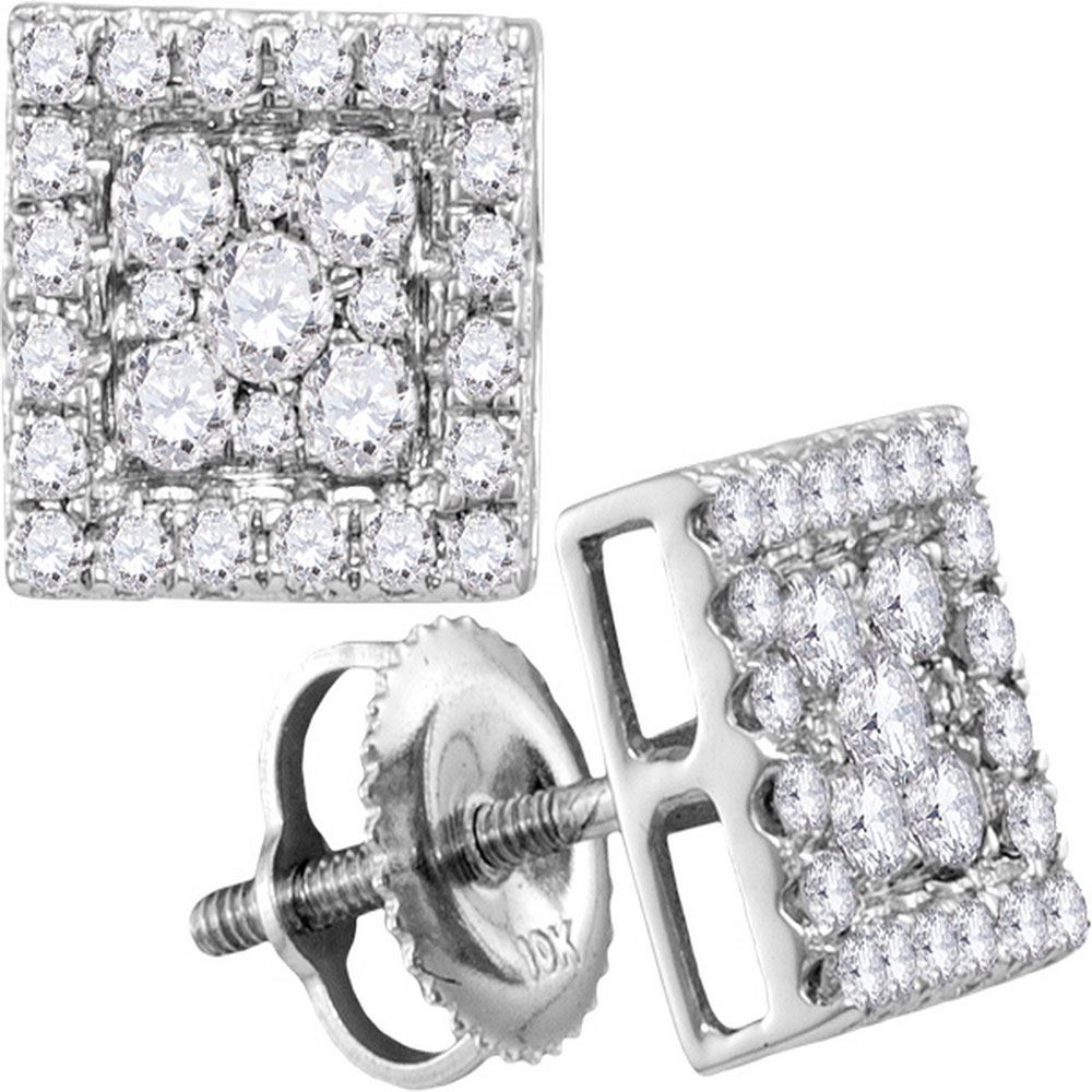 REF-33A6V - SKU: GD113108 ---- Diamond Square Cluster Stud Earrings 1/2 Cttw 10kt White Gold