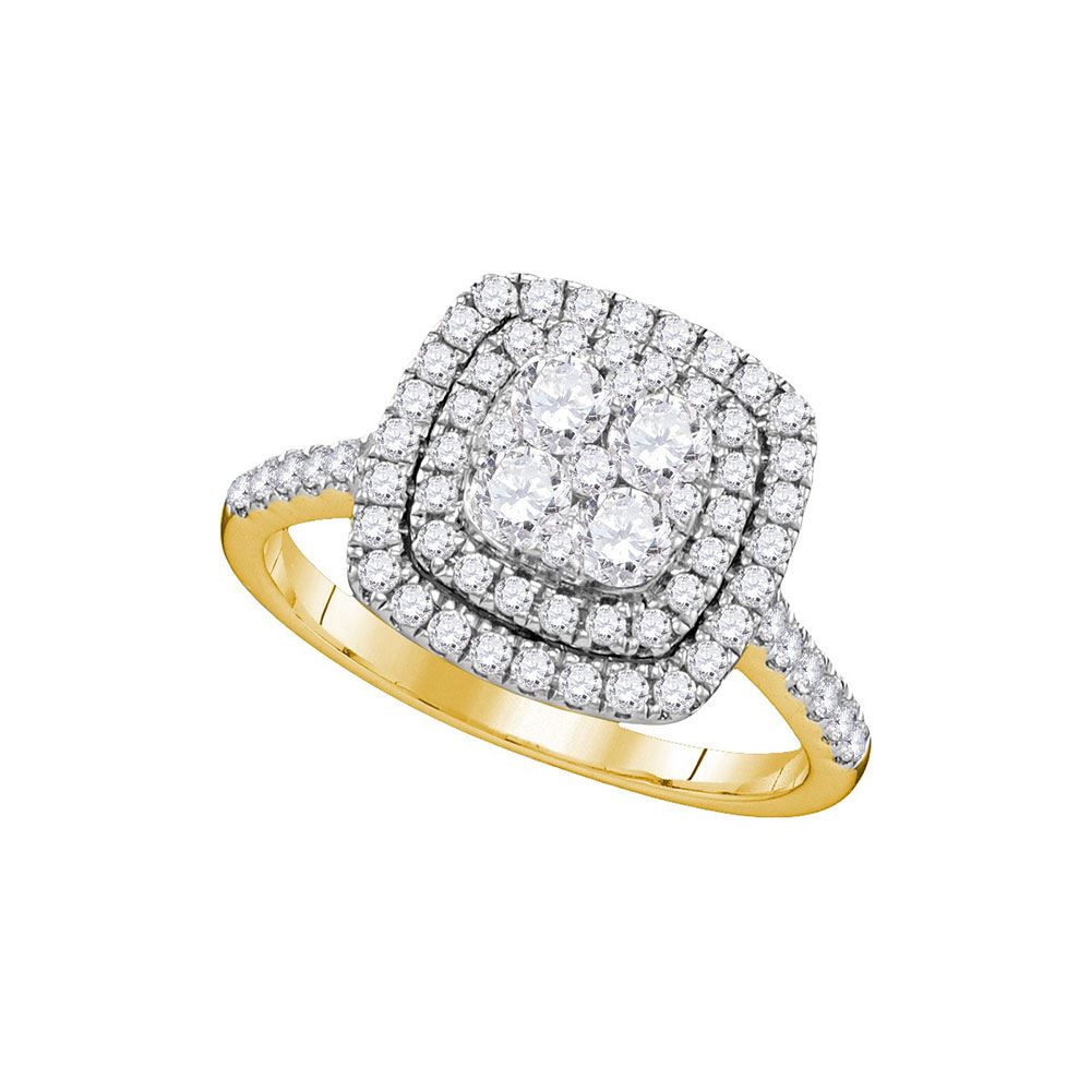 REF-90X9Y - SKU: GD109439 ---- Diamond Square Double Halo Cluster Ring 1.00 Cttw 14kt Yellow Gold