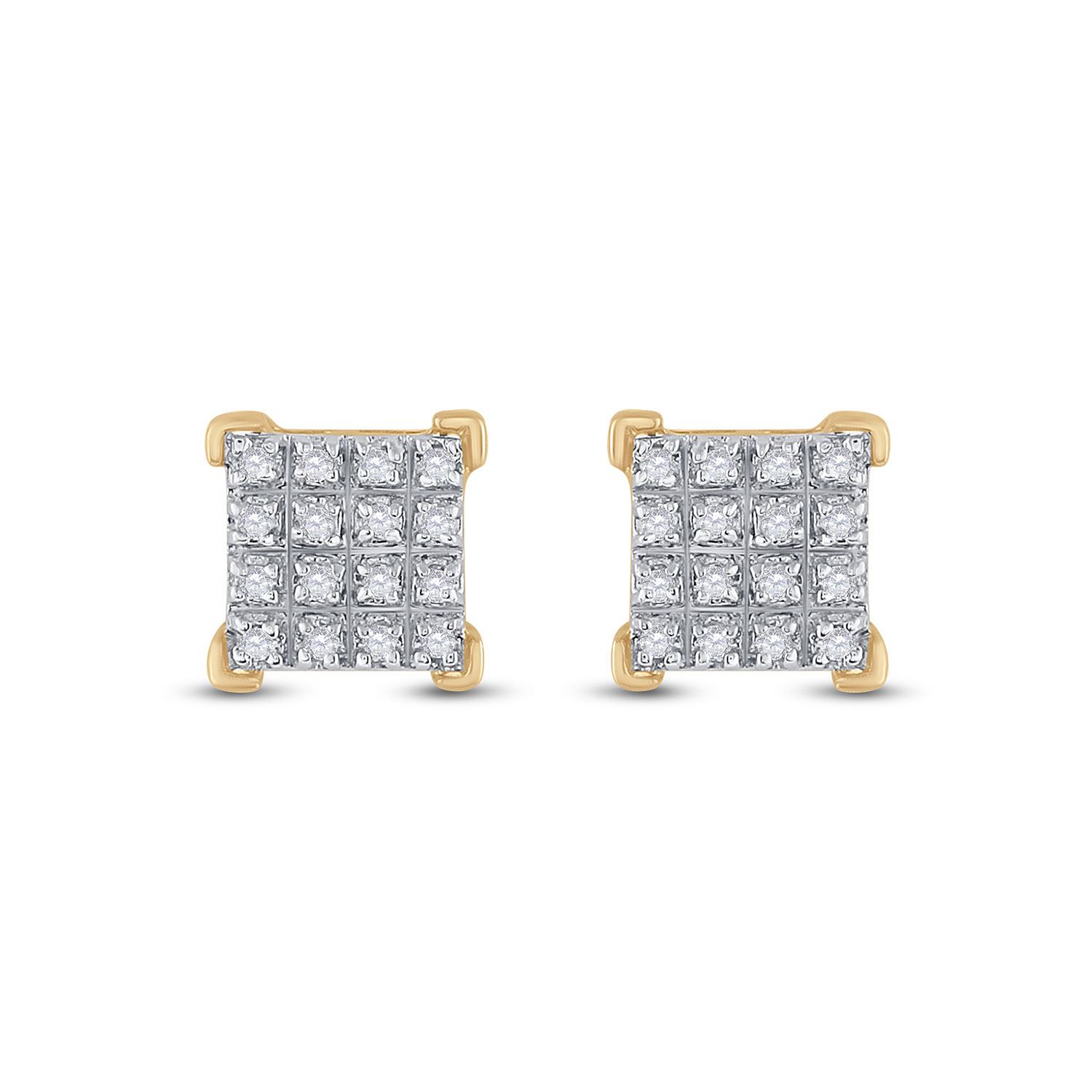 10kt Yellow Gold Womens Round Diamond Square Earrings 1/10 Cttw