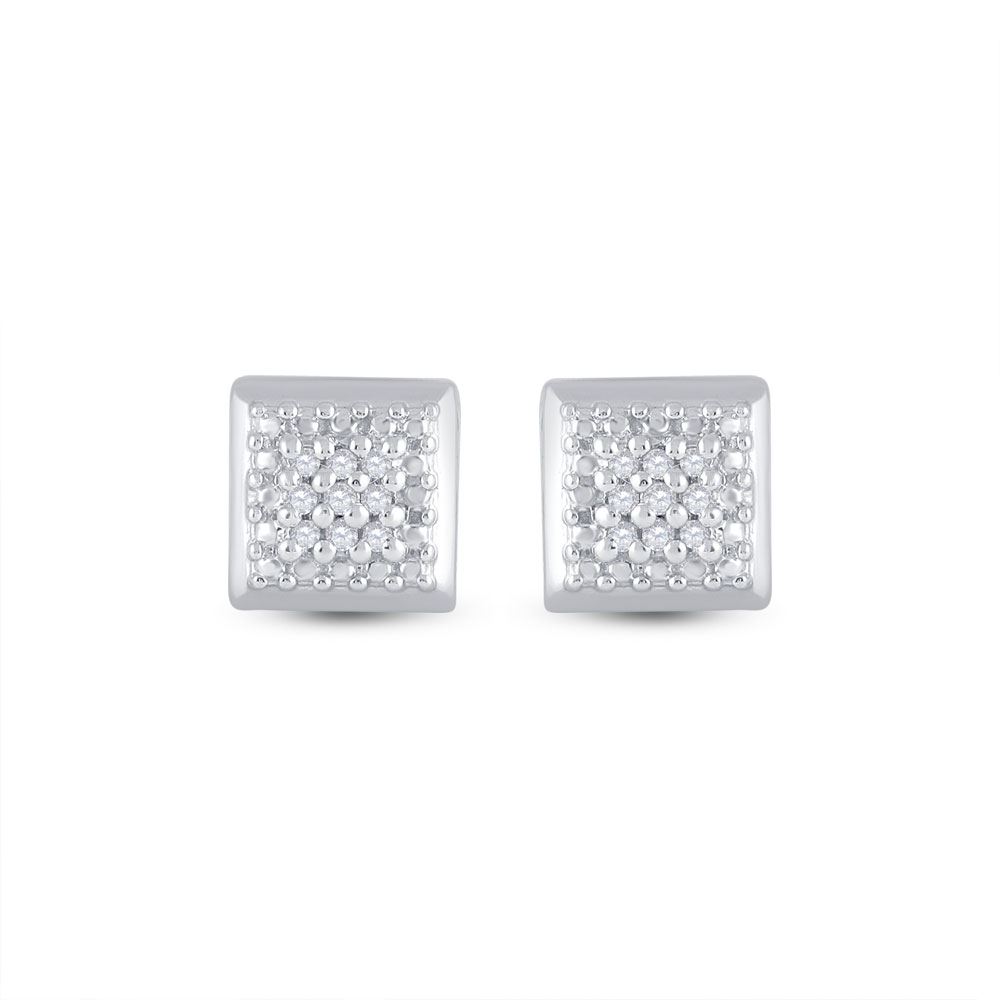 Sterling Silver Womens Round Diamond Square Earrings 1/10 Cttw