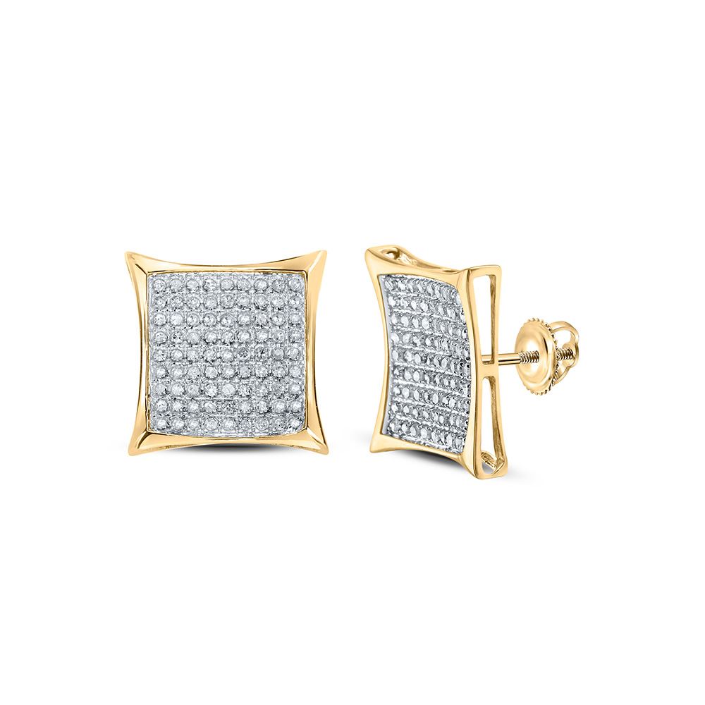 10kt Yellow Gold Womens Round Diamond Square Earrings 1/2 Cttw