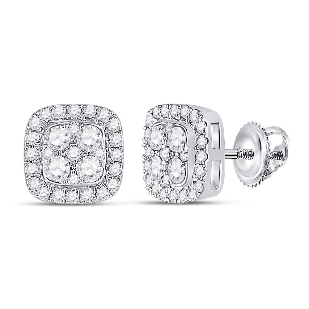 14kt White Gold Womens Round Diamond Square Earrings 1/2 Cttw