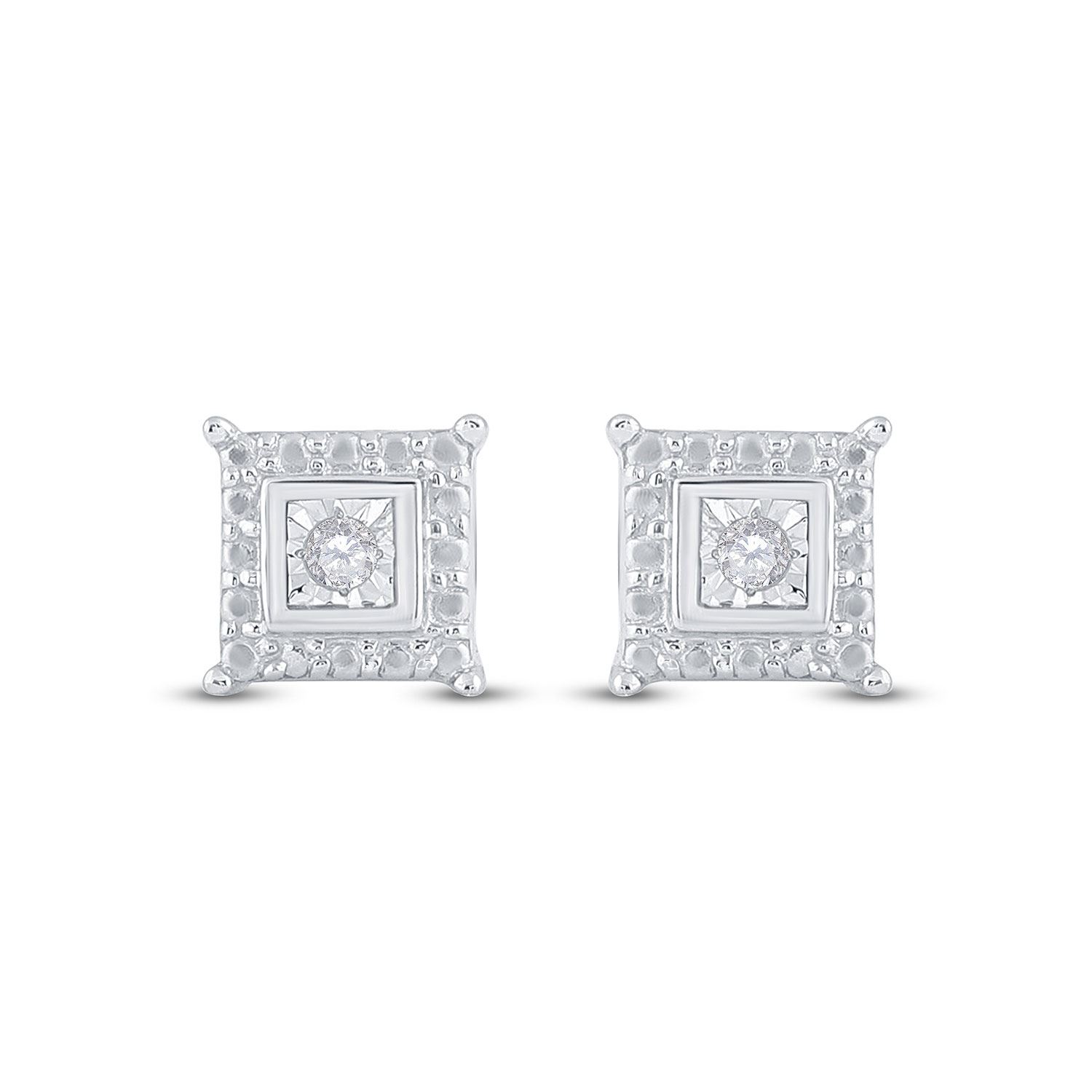 Sterling Silver Womens Round Diamond Square Earrings 1/20 Cttw