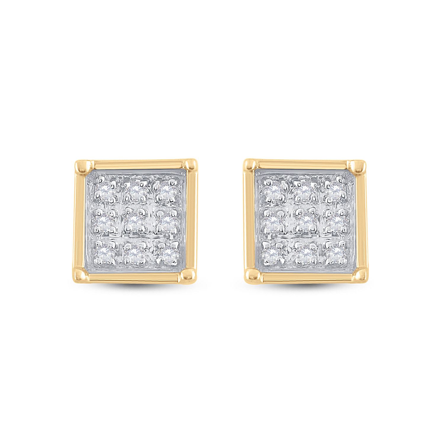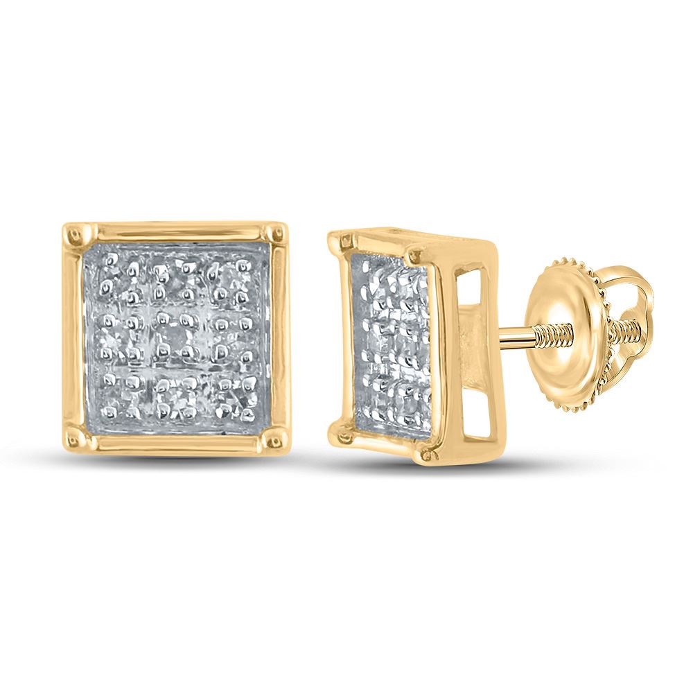 Yellow-tone Sterling Silver Womens Round Diamond Square Earrings 1/20 Cttw