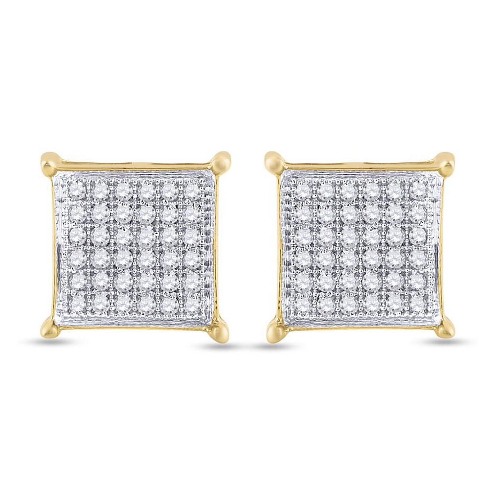 Yellow-tone Sterling Silver Womens Round Diamond Square Earrings 1/4 Cttw
