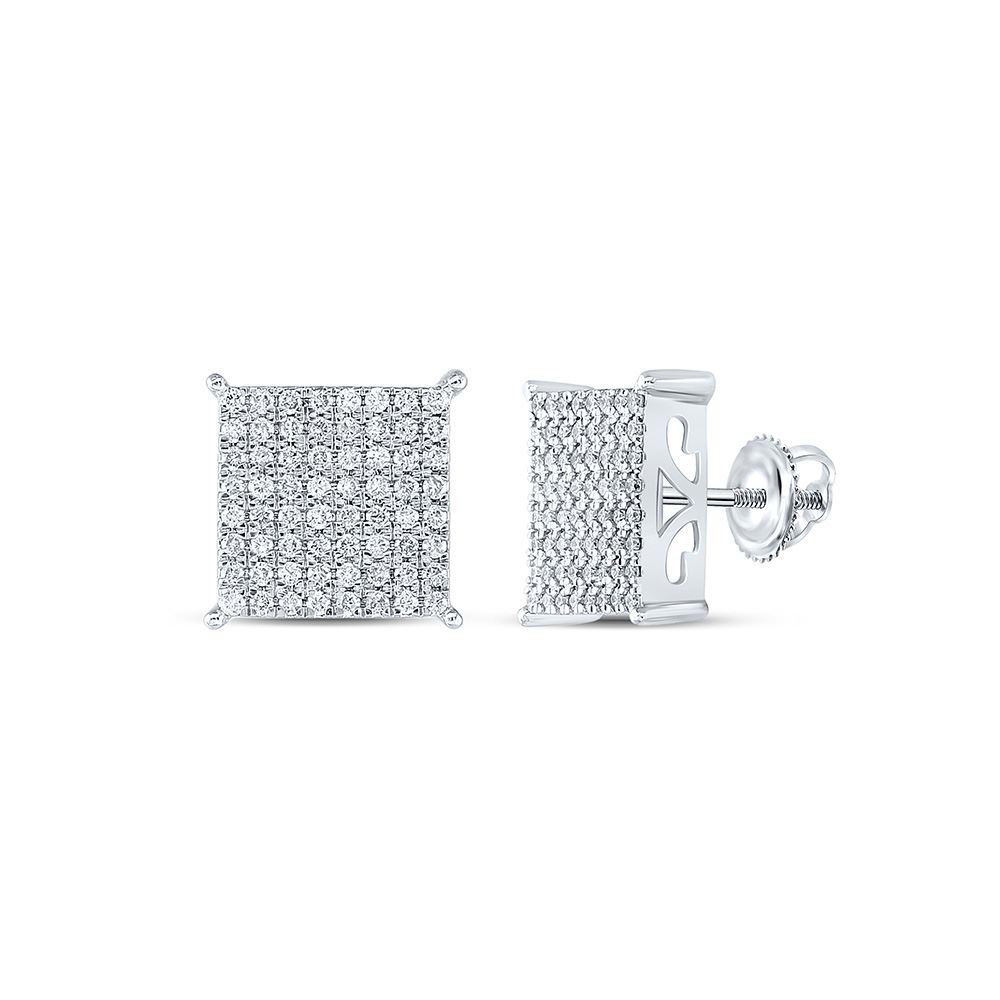 10kt White Gold Womens Round Diamond Square Earrings 1 Cttw