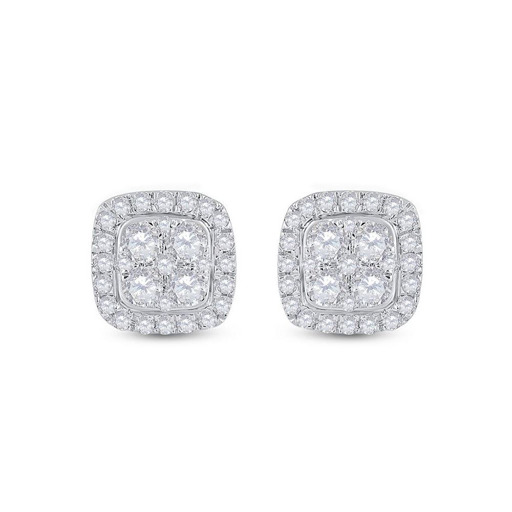 14kt White Gold Womens Round Diamond Square Earrings 3/4 Cttw