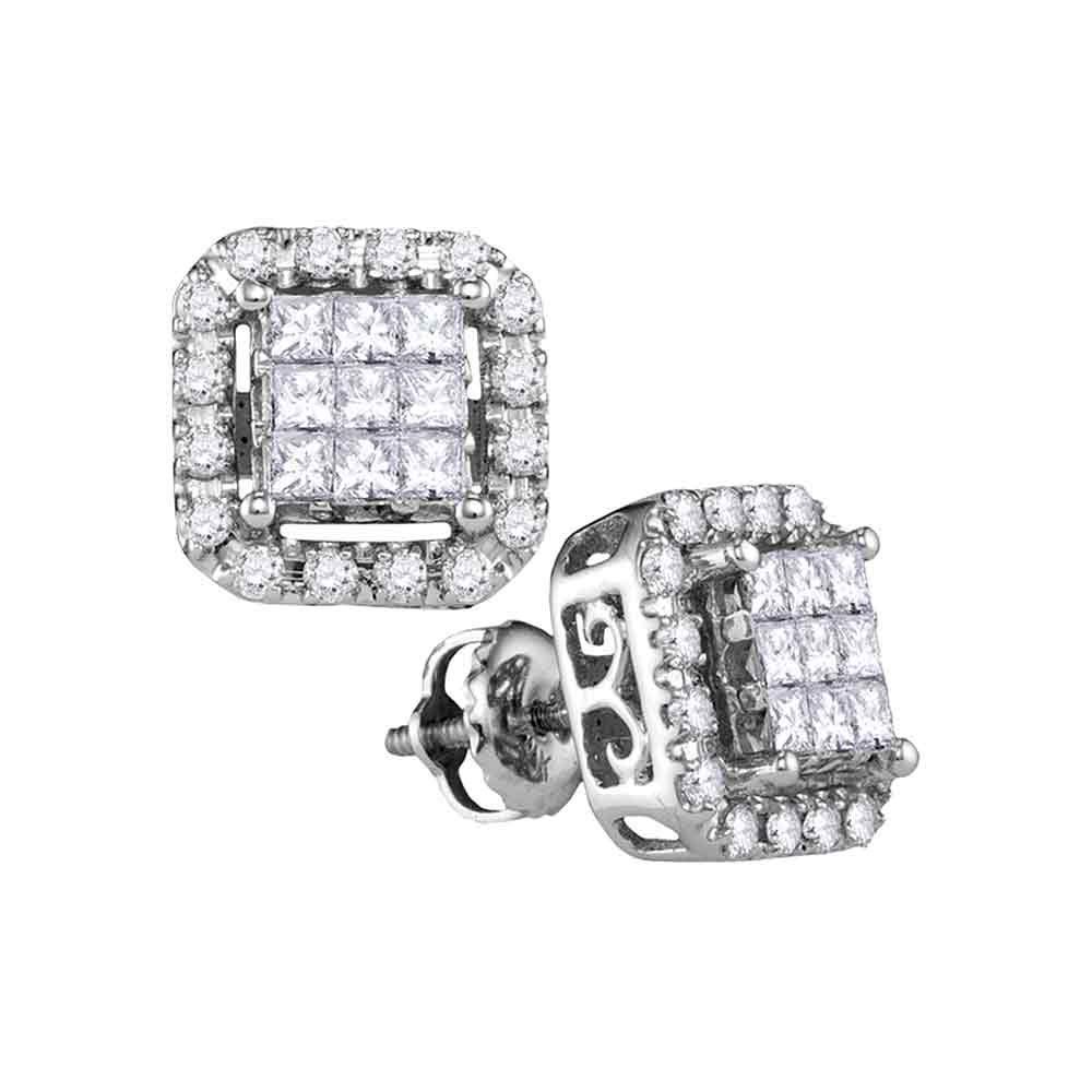 REF-92N7F - SKU: GD107352 ---- Diamond Square Frame Cluster Stud Earrings 1.00 Cttw 14kt White Gold