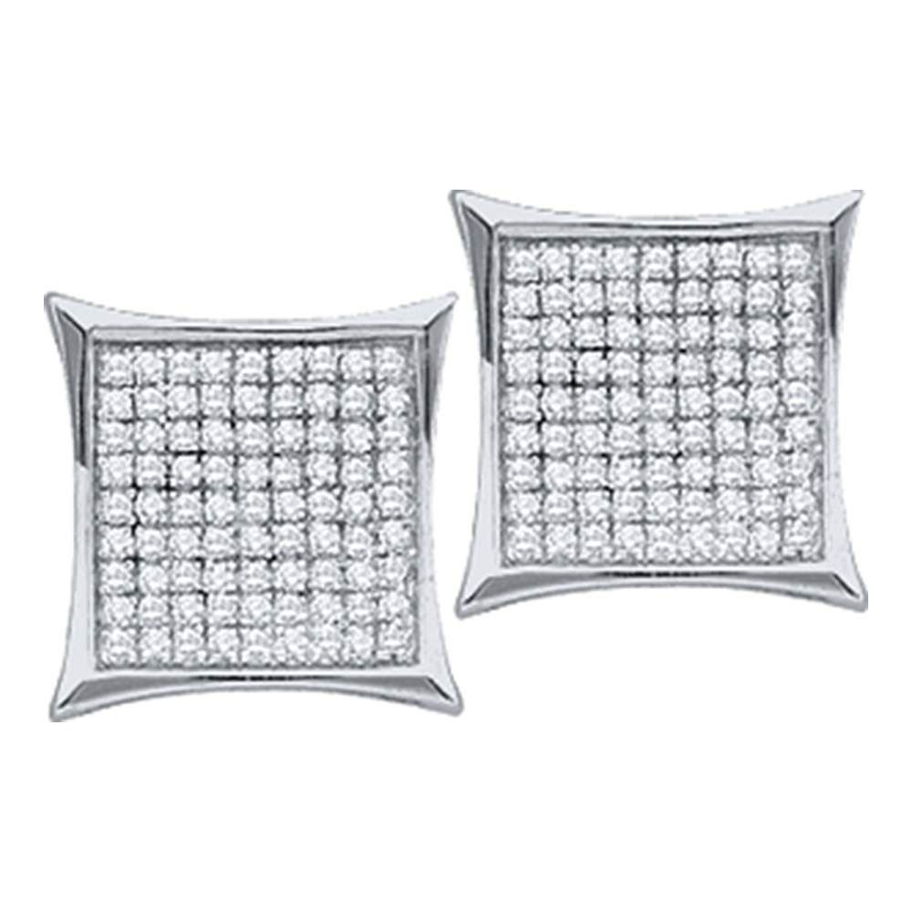 REF-16K4R - SKU: GD54300 ---- Diamond Square Kite Cluster Earrings 1/3 Cttw 10kt White Gold