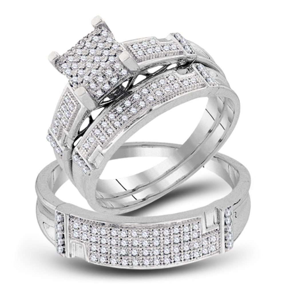 10kt White Gold His Hers Round Diamond Square Matching Wedding Set 1/2 Cttw.
