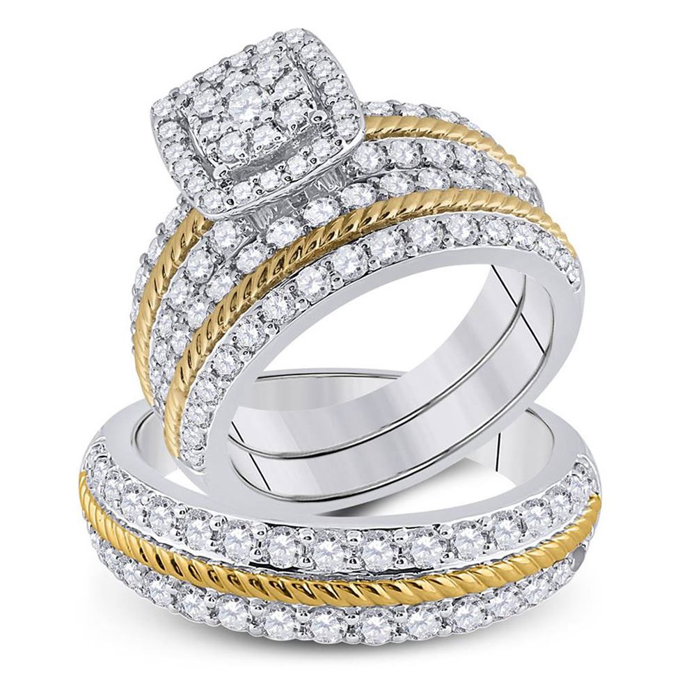14kt Two-tone Gold His Hers Round Diamond Square Matching Wedding Set 2-3/8 Cttw.