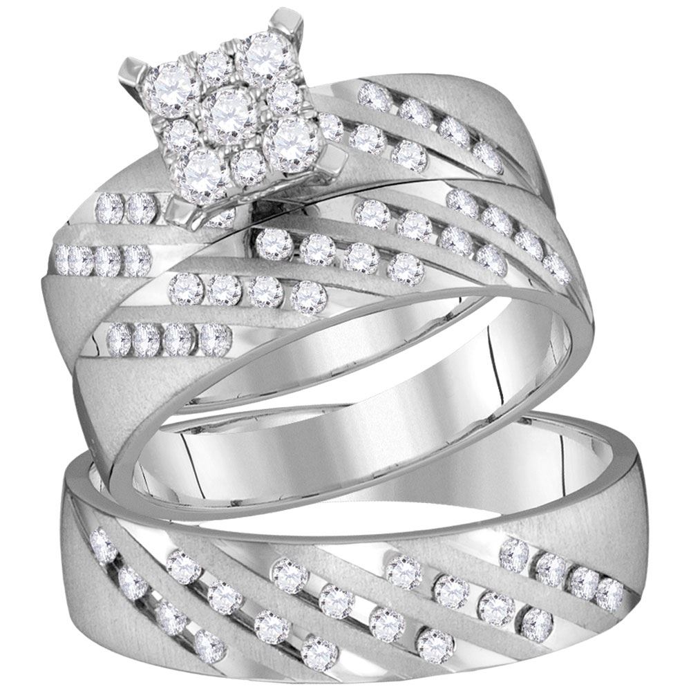 14kt White Gold His Hers Round Diamond Square Matching Wedding Set 7/8 Cttw.