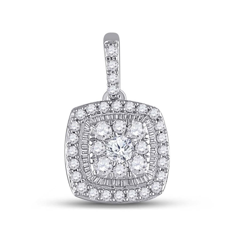 14kt White Gold Womens Round Diamond Square Pendant 1/4 Cttw