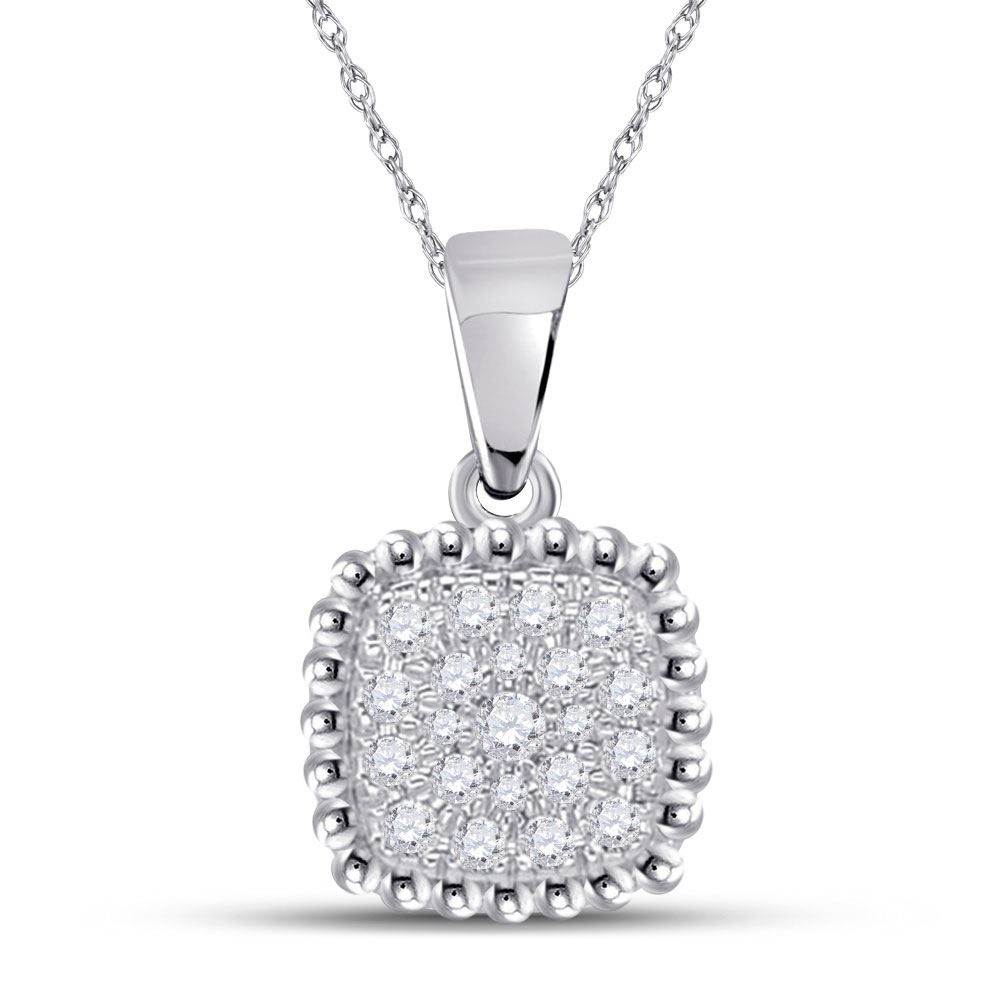 10kt White Gold Womens Round Diamond Square Pendant 1/6 Cttw