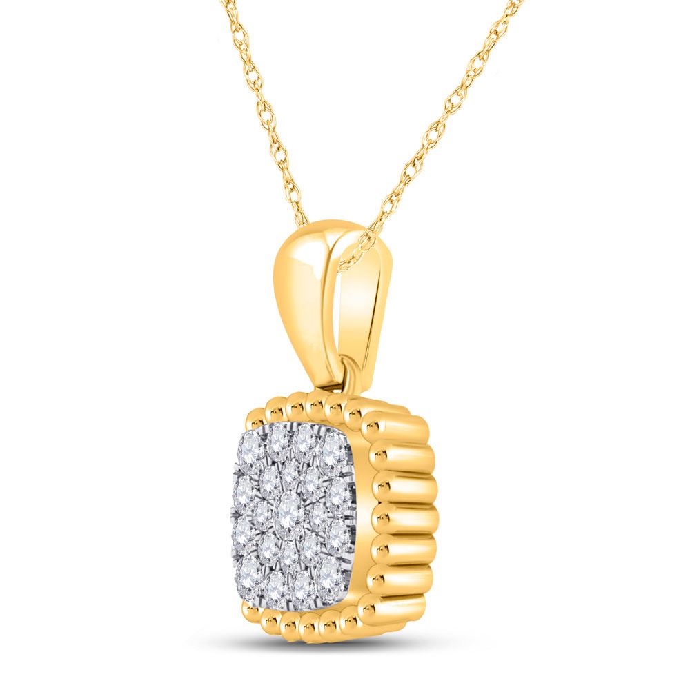 10kt Yellow Gold Womens Round Diamond Square Pendant 1/6 Cttw