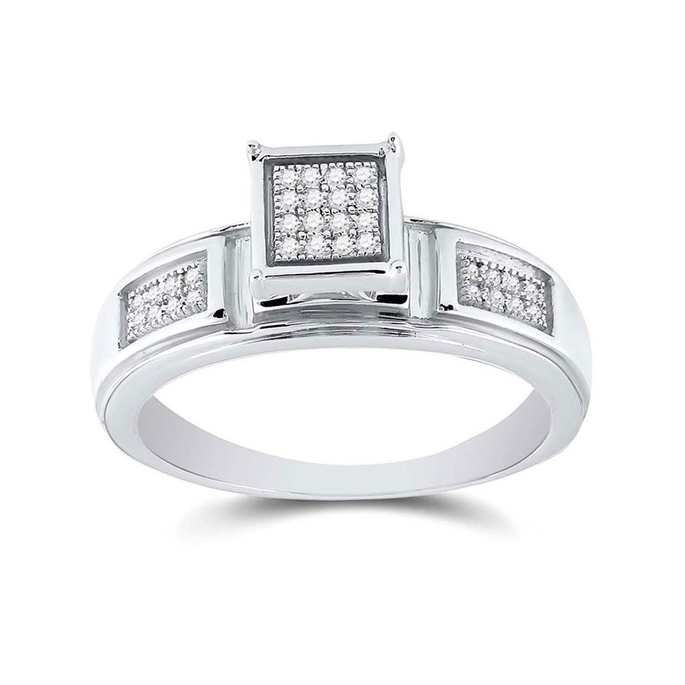 Sterling Silver Womens Round Diamond Square Ring 1/10 Cttw