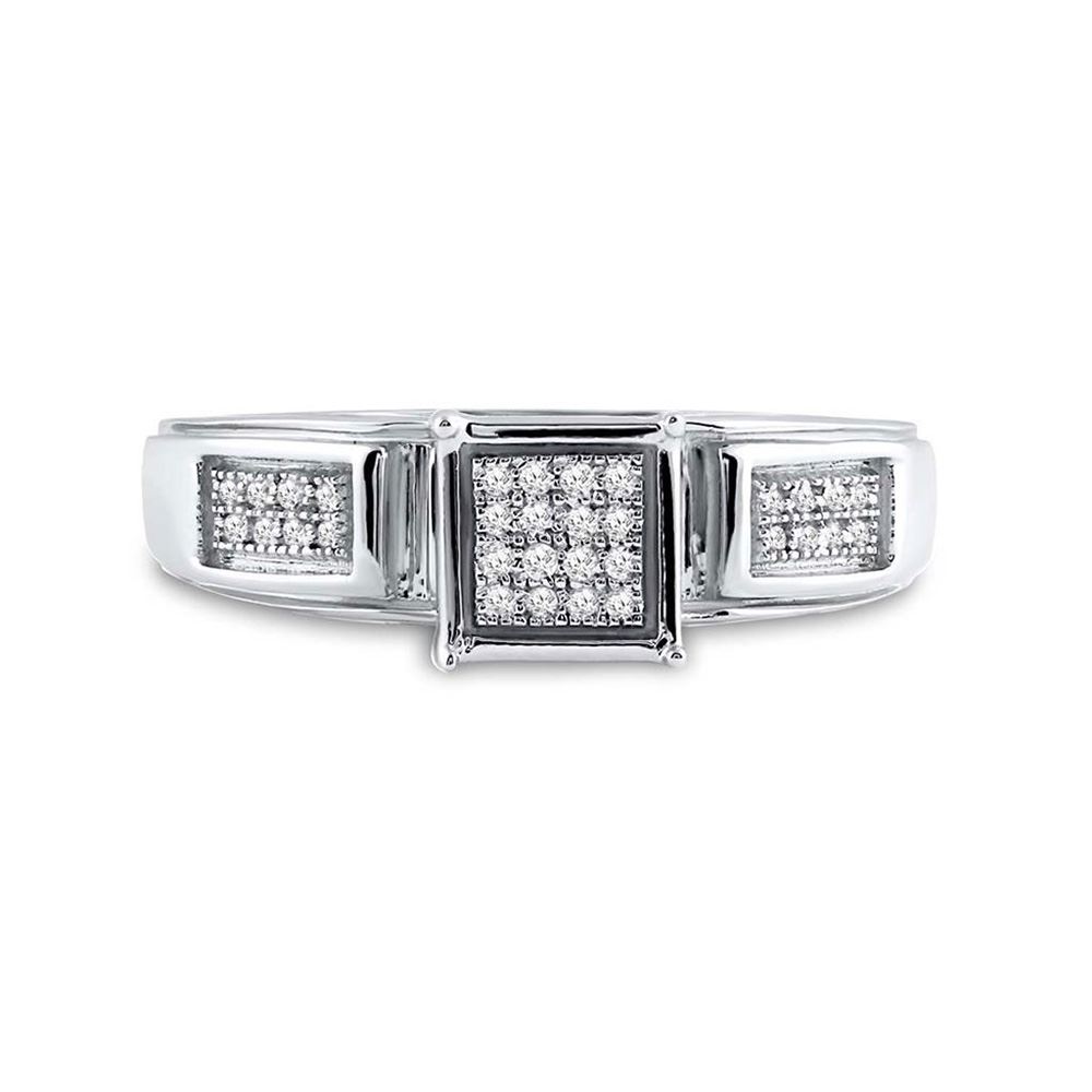 Sterling Silver Womens Round Diamond Square Ring 1/10 Cttw