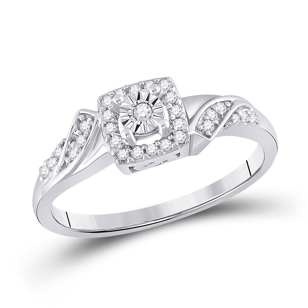 Sterling Silver Womens Round Diamond Square Ring 1/6 Cttw