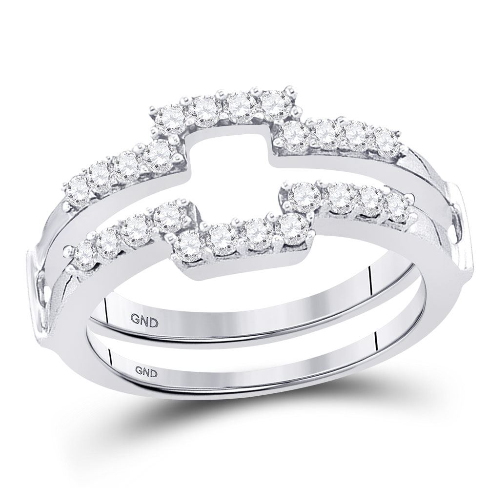 14kt White Gold Womens Round Diamond Square Solitaire Enhancer Wedding Band 1/2 Cttw