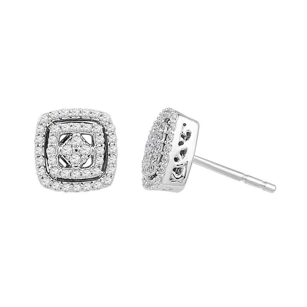 10kt White Gold Womens Round Diamond Square Stud Earrings 3/8 Cttw