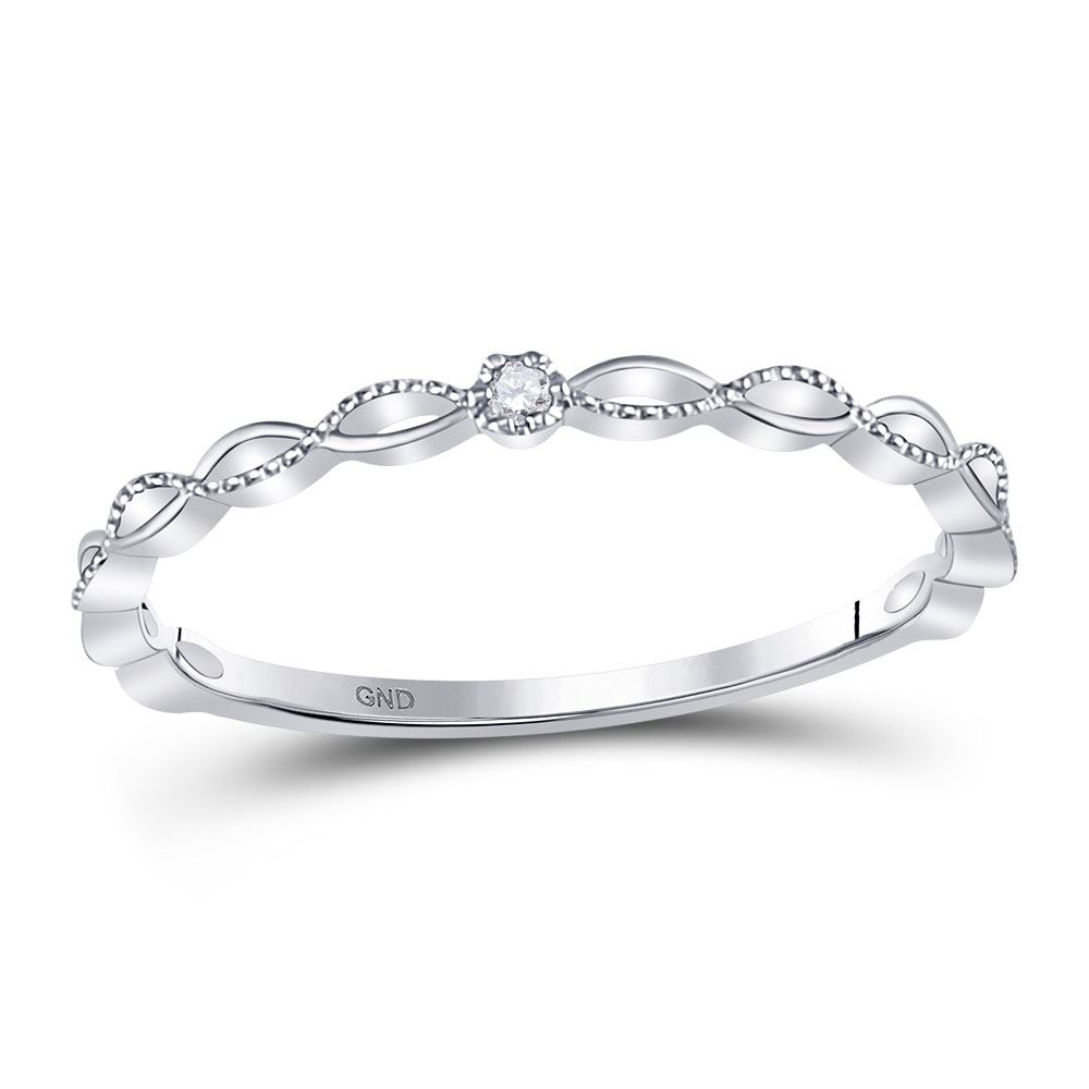 10kt White Gold Womens Round Diamond Stackable Band Ring .01 Cttw