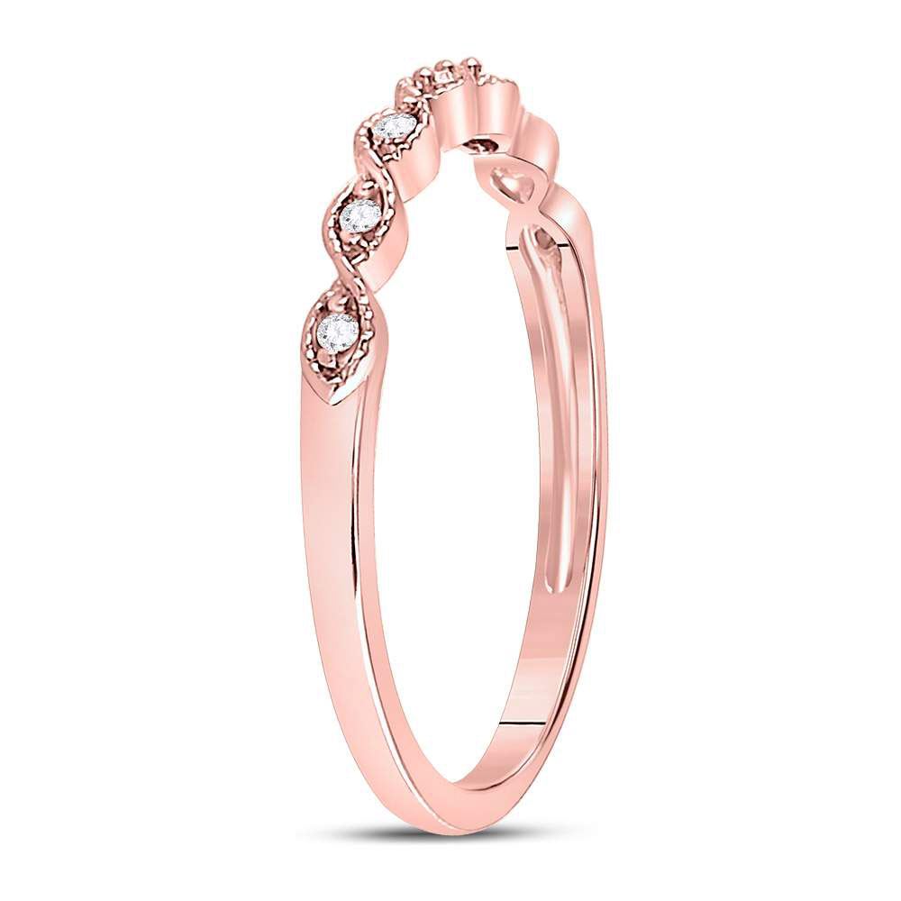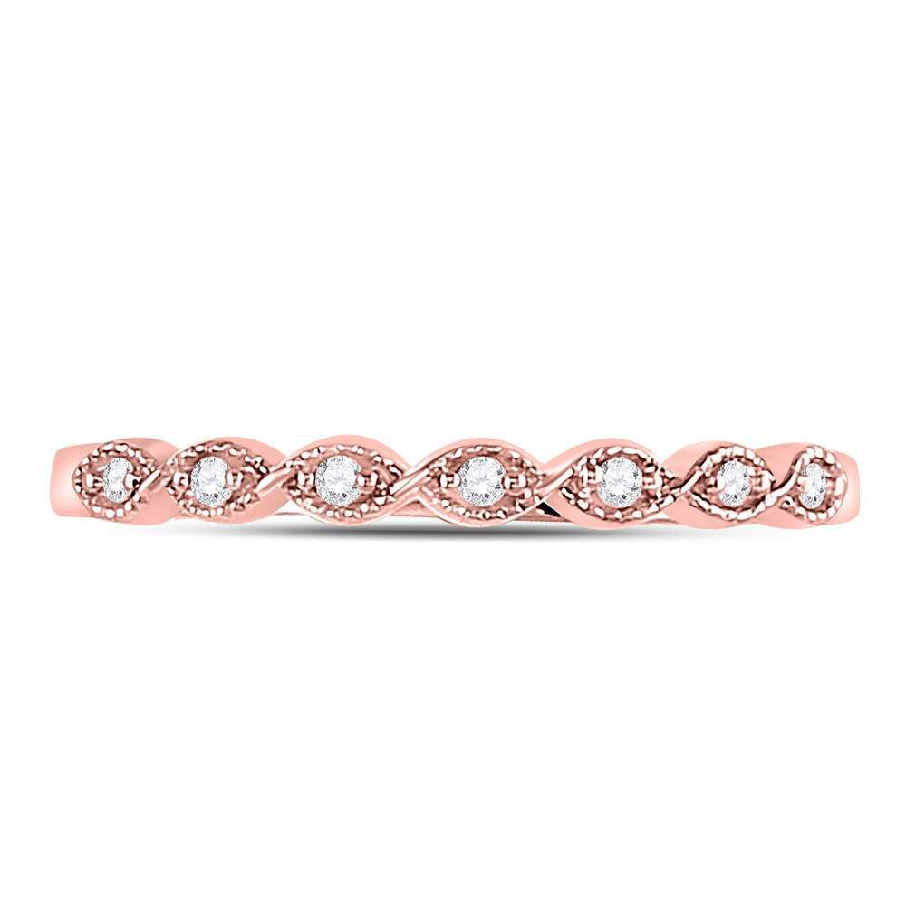 14kt Rose Gold Womens Round Diamond Stackable Band Ring 1/20 Cttw