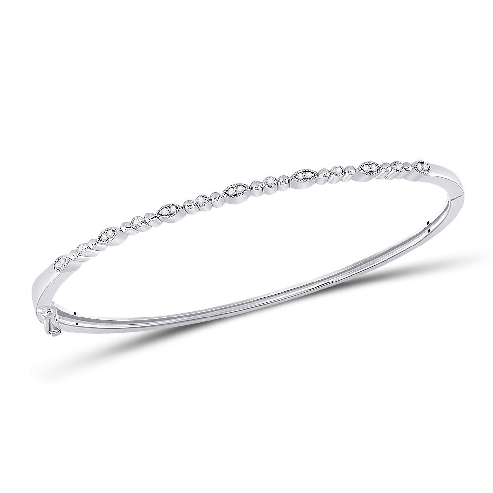 10kt White Gold Womens Round Diamond Stackable Bangle Bracelet 1/8 Cttw