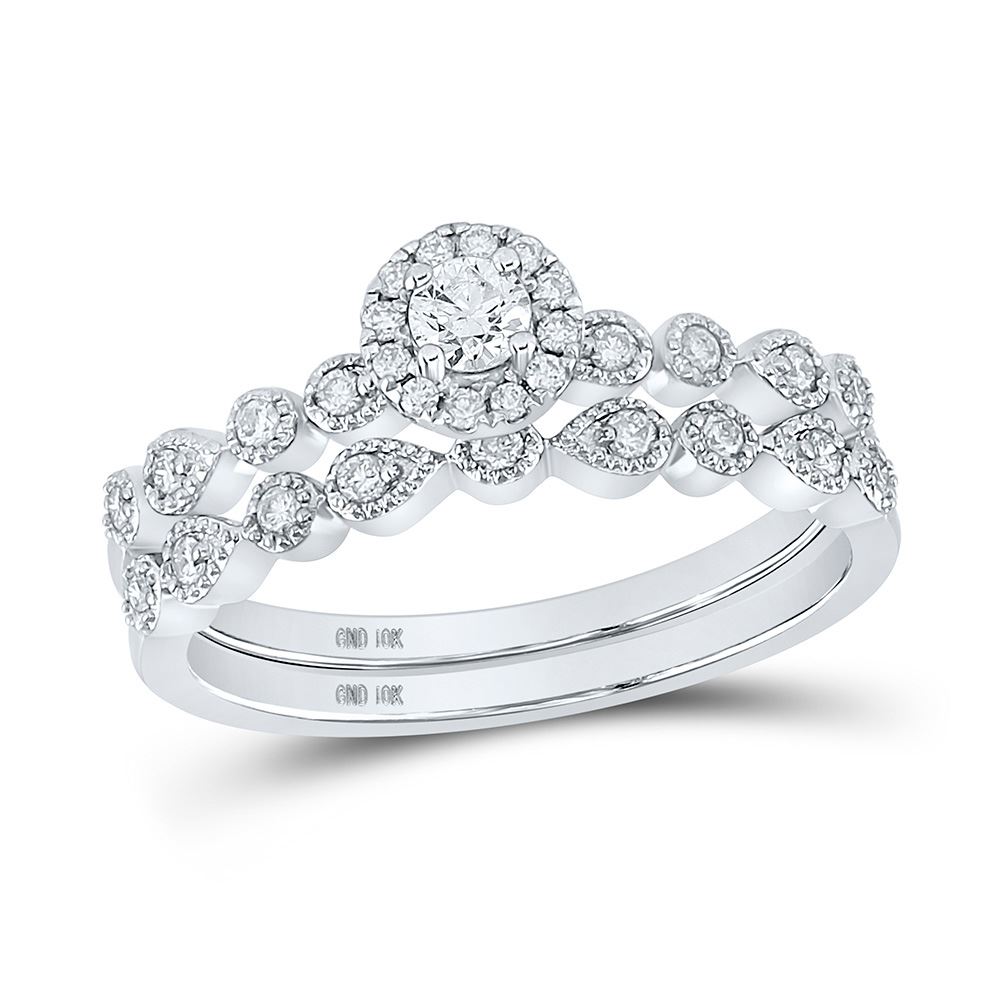 10kt White Gold Round Diamond Stackable Bridal Wedding Ring Band Set 1/3 Cttw.